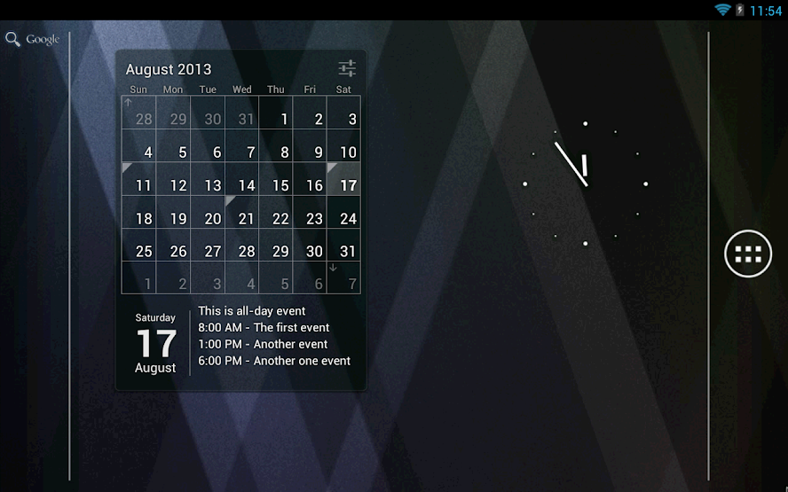 : This is a simple calendar widget where the month view and todays agenda are combined together. It gives you a good overview of your events at hand in your home screen.Features: